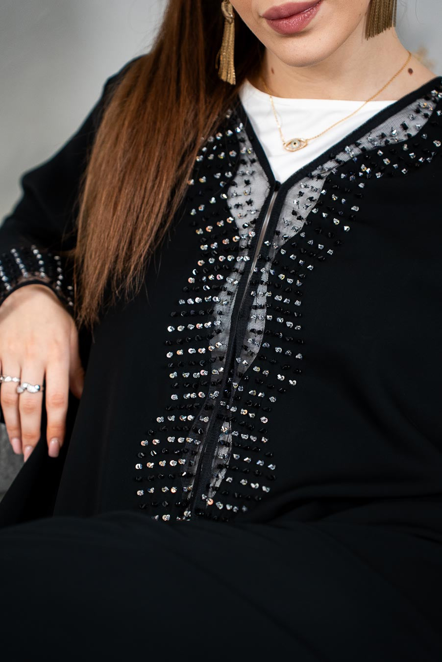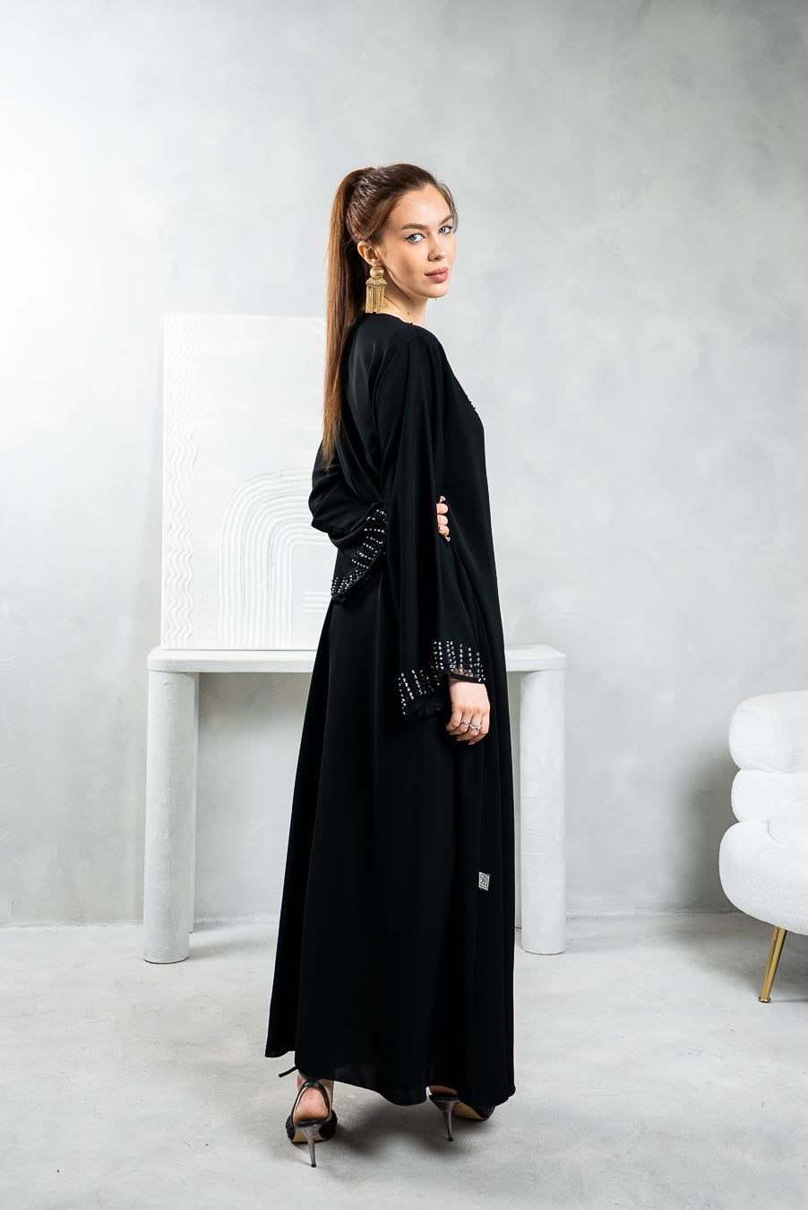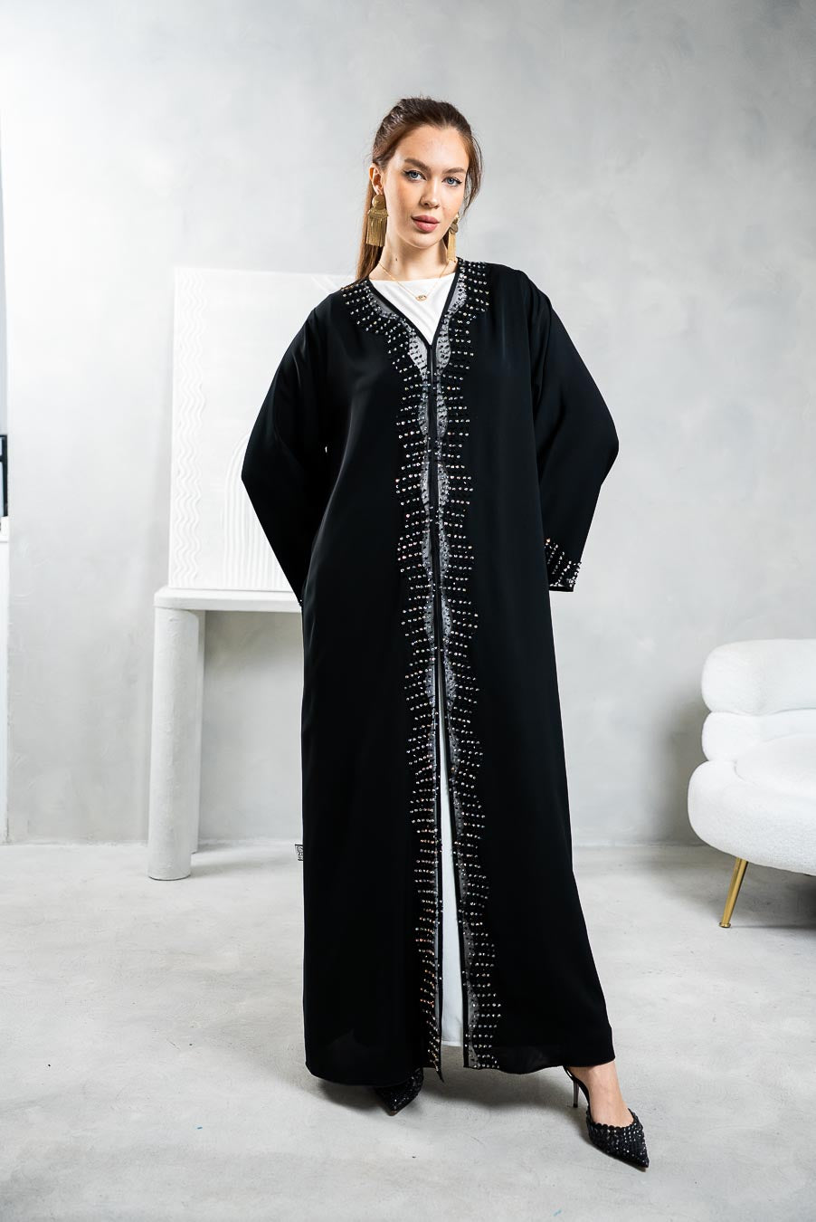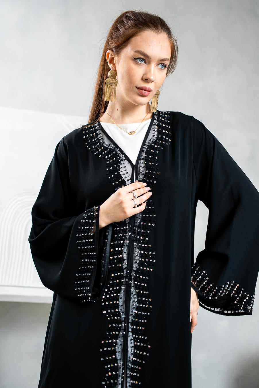 Nada abaya with tulle detailing at the front, beautifully enhanced with intricate handwork.
