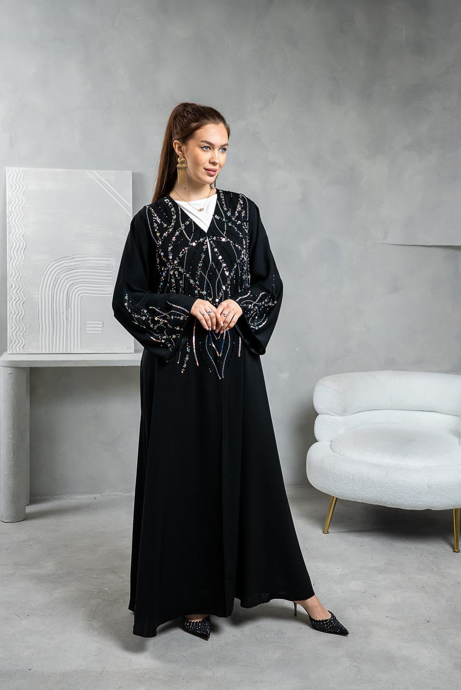 Nada fabric abaya with a little klosh cut and delicate handwork.
