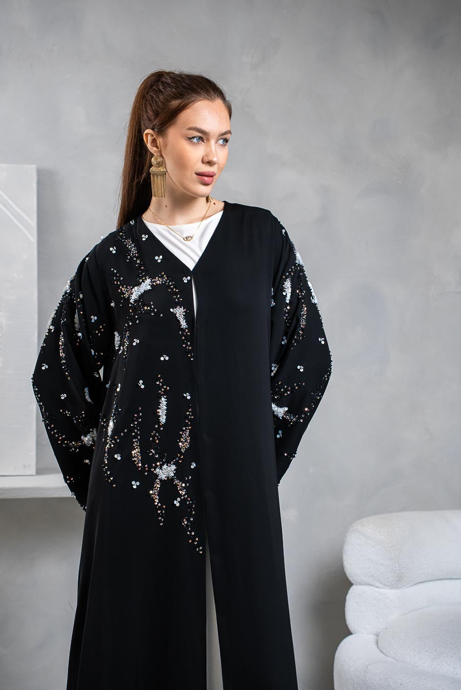 Nada fabric abaya with a little klosh cut and delicate handwork.