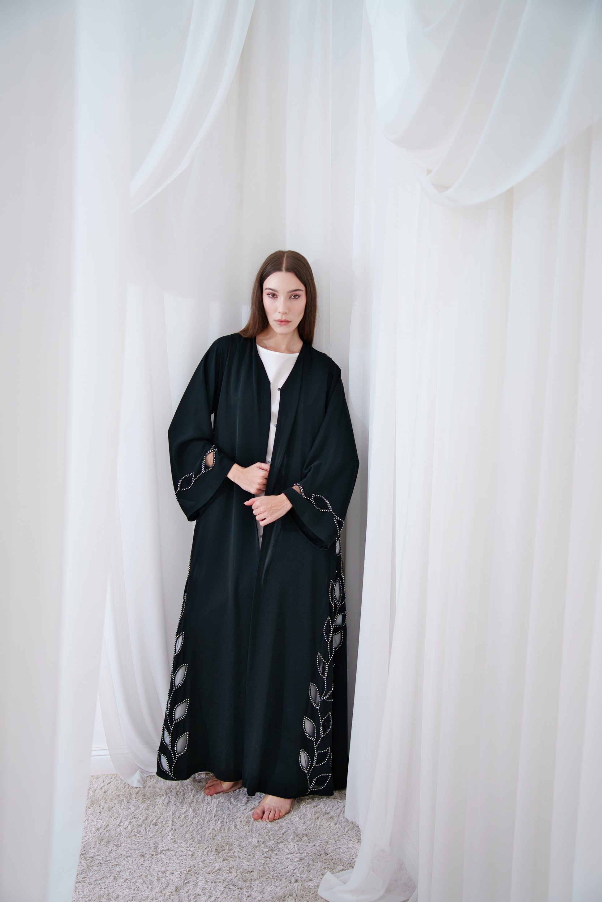 Elegantly crafted Nada abaya with a soft drape, offering timeless style and effortless comfort.