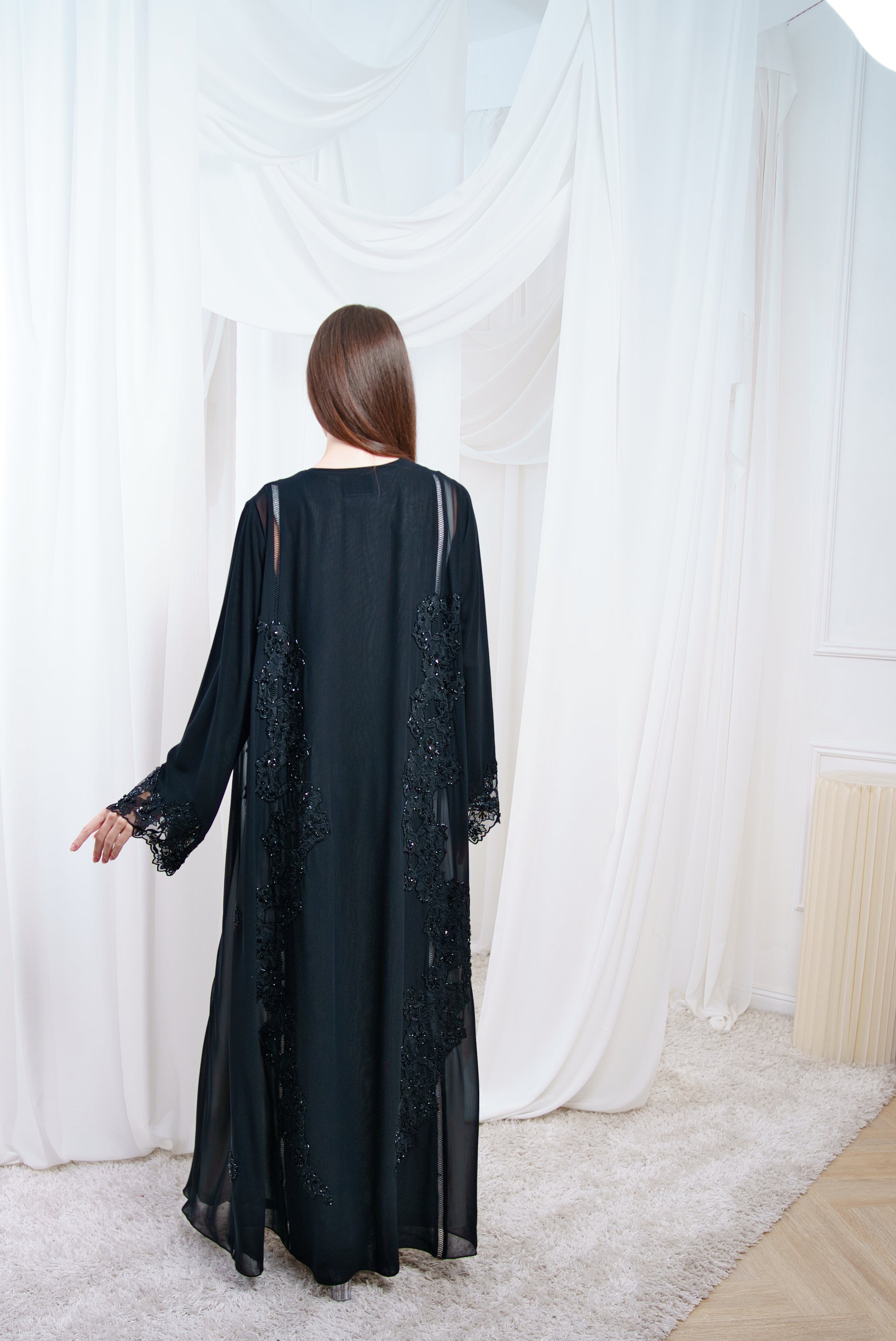 Lightweight and flowing, this abaya is crafted from soft chiffon for a graceful drape. Its elegant silhouette makes it perfect for both casual and formal occasions.
