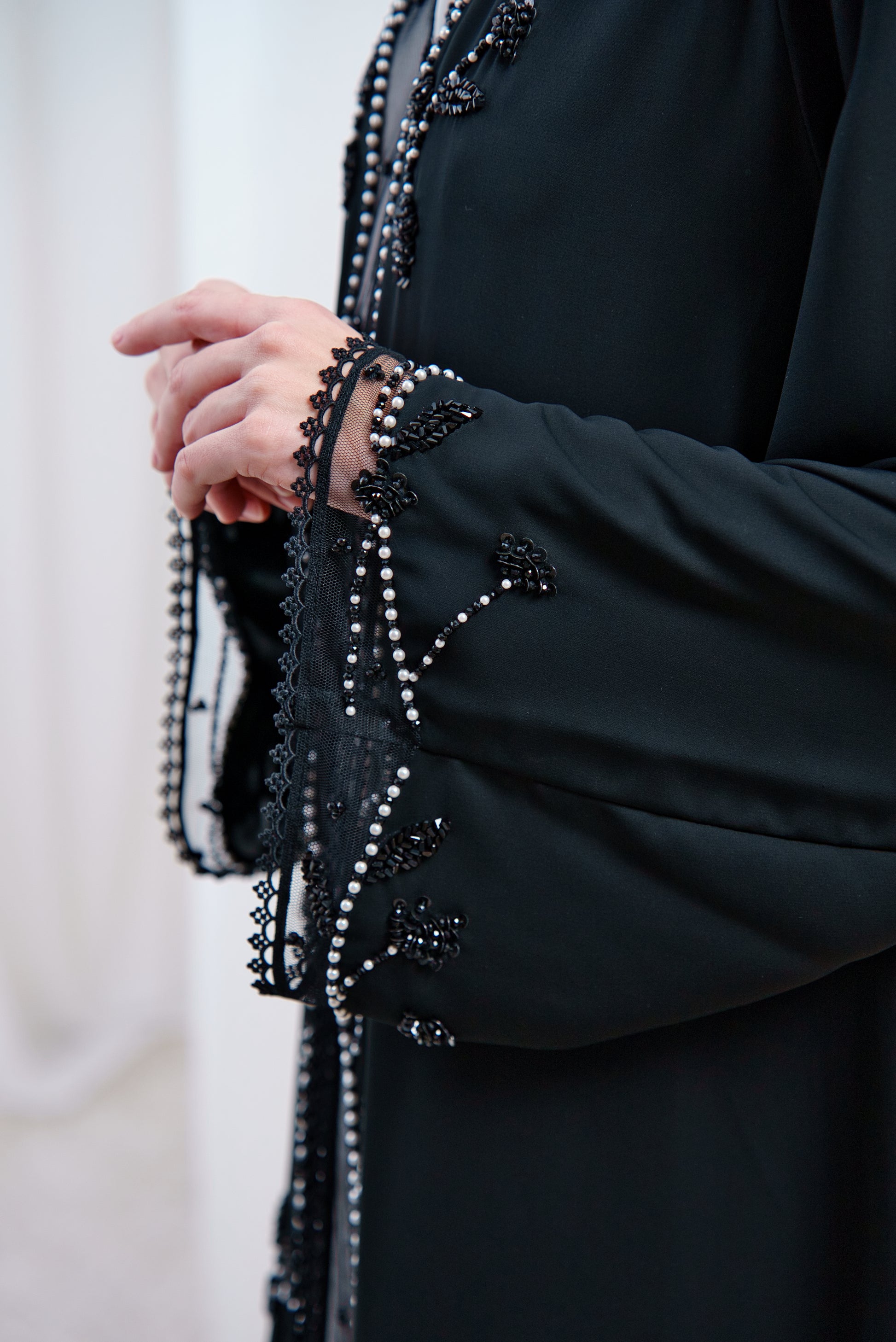 Abaya detailed with a beautiful combination of Nada and tulle, creating a soft, layered look with a graceful flow.